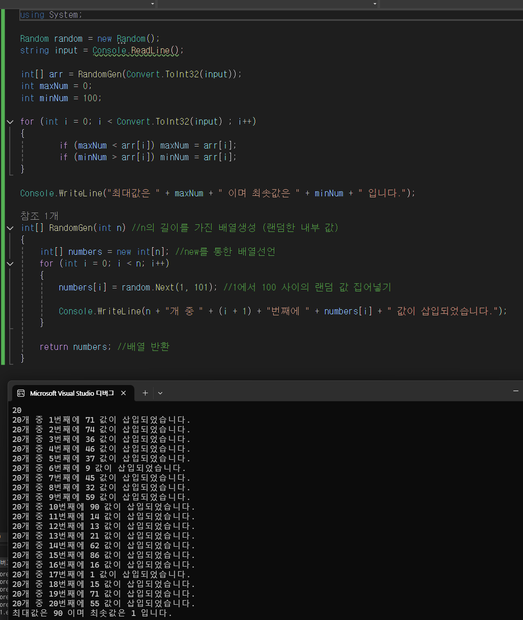 int[] RandomGen(int n) //n의 길이를 가진 배열생성 (랜덤한 내부 값)