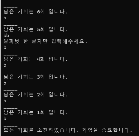 Console.WriteLine("\r\n모든 기회를 소진하였습니다. 게임을 종료합니다.");