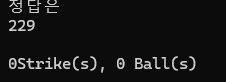 Console.WriteLine(strike + "Strike(s), " + ball + " Ball(s)"); //스트라이크와 볼 갯수 출력