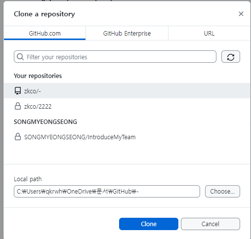 이런 화면이 나오는데 이제 github Desktop을 통해 접속해보자.