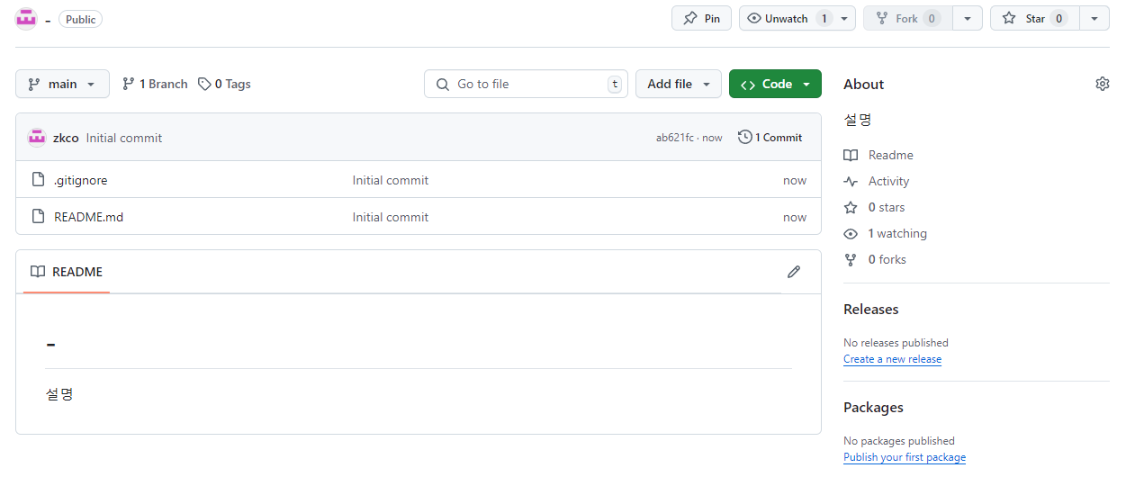 README 파일을 추가해주고 .gitignore파일을 작성하려는 언어나 툴에 맞게 설정해주자.
