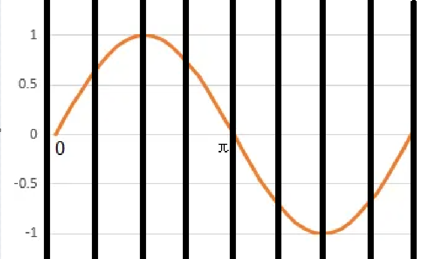 각각 약 0, 0.6, 1, 0.6, 0, -0.6, -1, -0.6, 0이 될 것이다. (대충 눈으로 봤을 때)