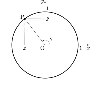 우선 반지름이 1인 원을 생각해보자. 원 위의 한 지점을 P라고 부르면