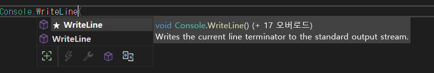 Console.WriteLine()도 오버로딩 된 메소드이며 무려 18개의 오버로딩이 된 것을 확인할 수 있다.