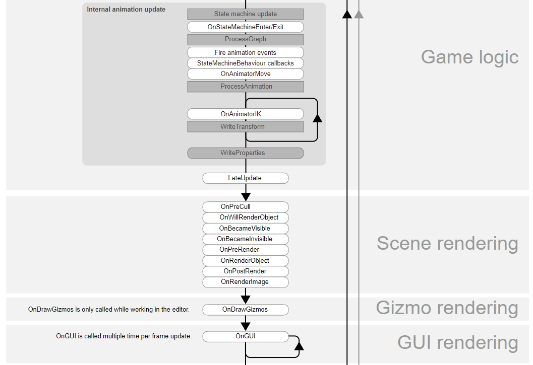 유니티에서 지원하는 함수들의 실행 순서이다.