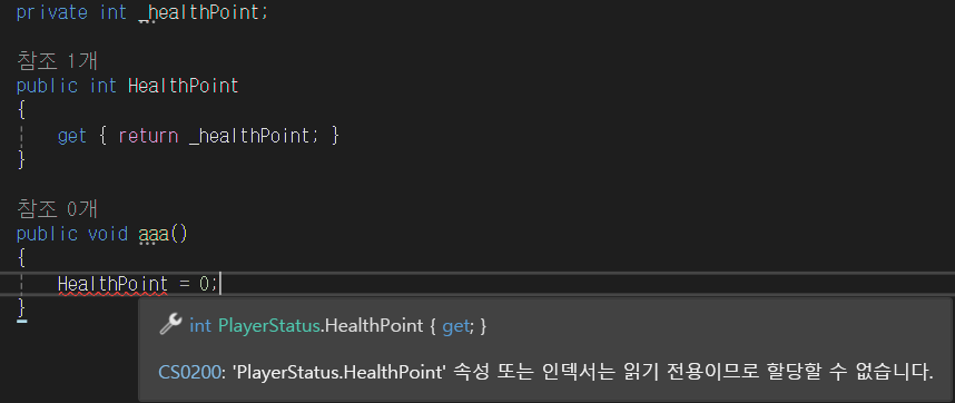외부에서 HealthPoint에 접근하면 _healthPoint를 반환해준다.