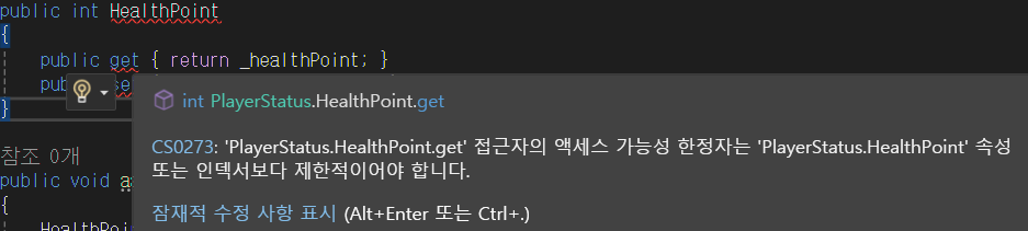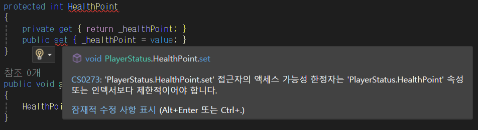 또한 외부에서 HealthPoint의 값을 변경한다면 그 값(value)을 _healthPoint에 넣어준다.