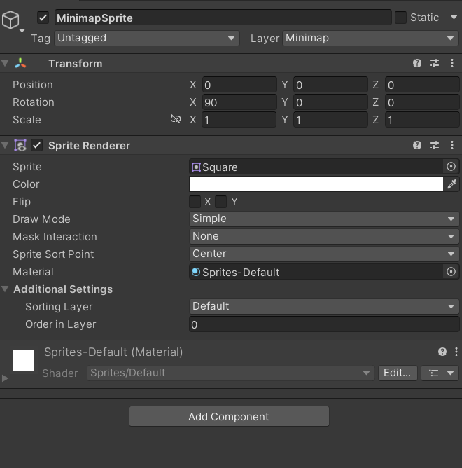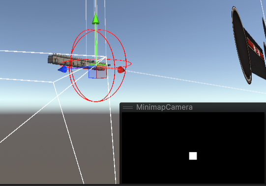 미니맵 카메라에 하얀 스프라이트 하나만 보이는 걸 볼 수 있다.