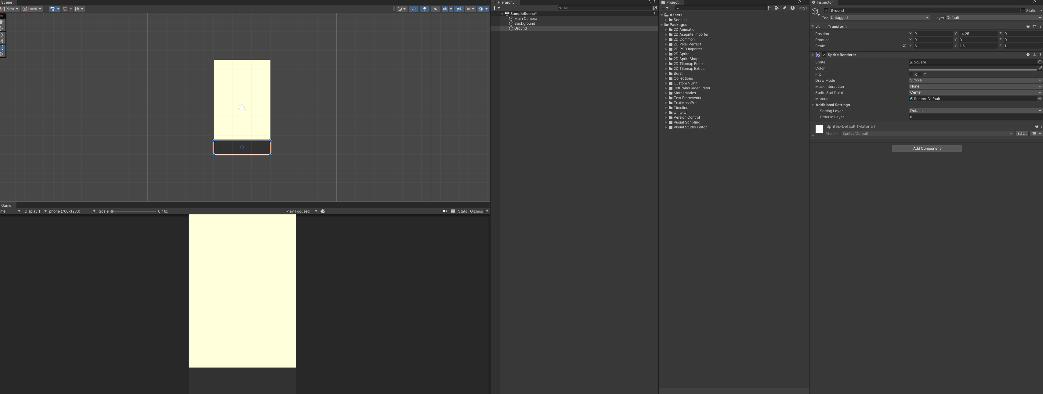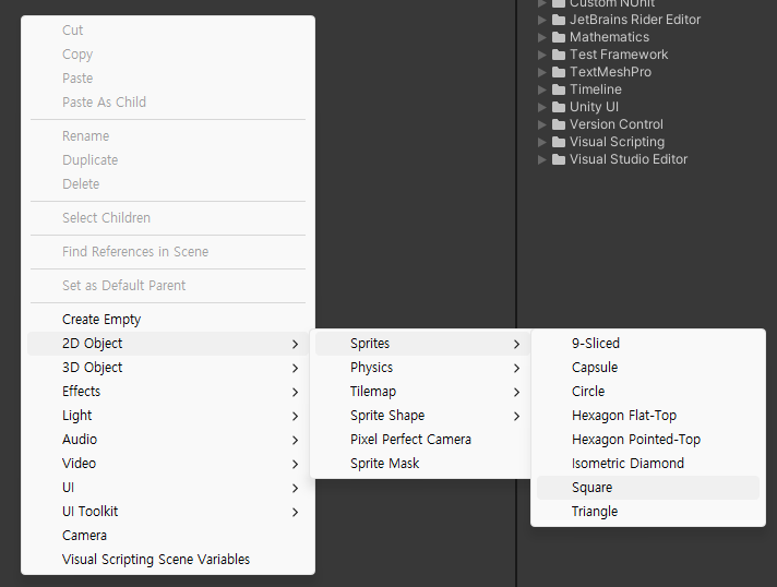 2d스프라이트 중 스퀘어를 추가하면