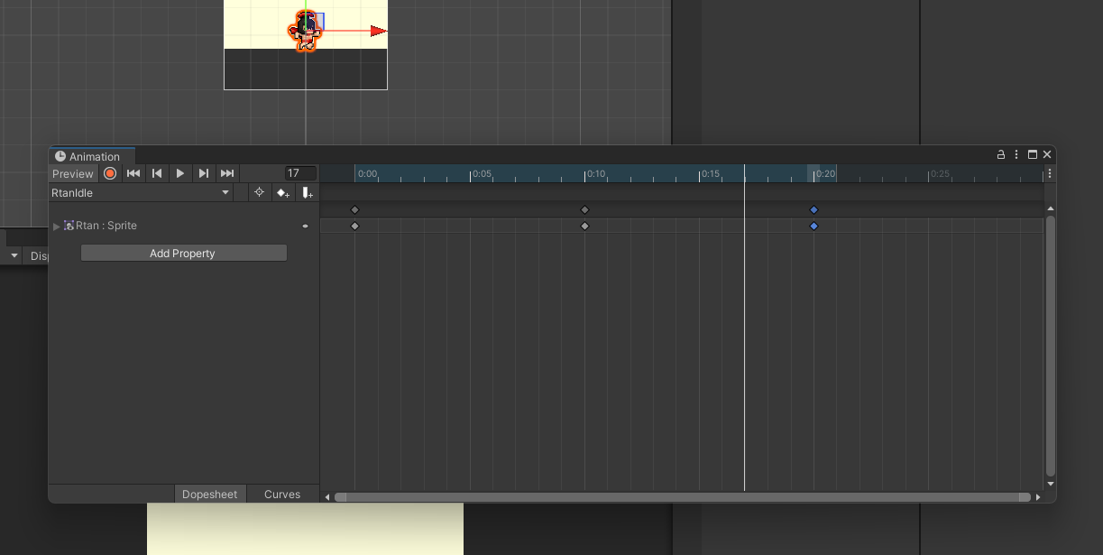 상단 바 Window -> Animation -> Animation 을 클릭하면 아래와 같은 창이 나온다.