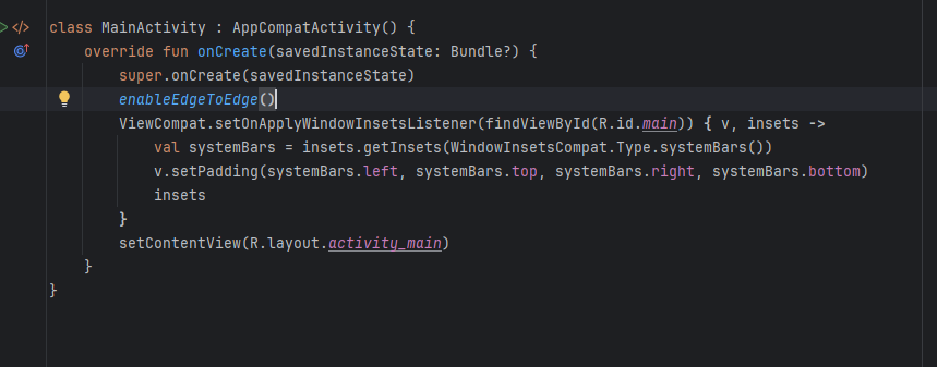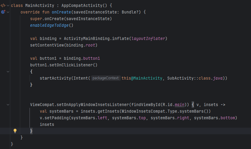 setContentView가 처음 프로젝트를 생성하면 상당히 아래 부분에 있어서 끝에 있어야 하는갑다 싶었는데