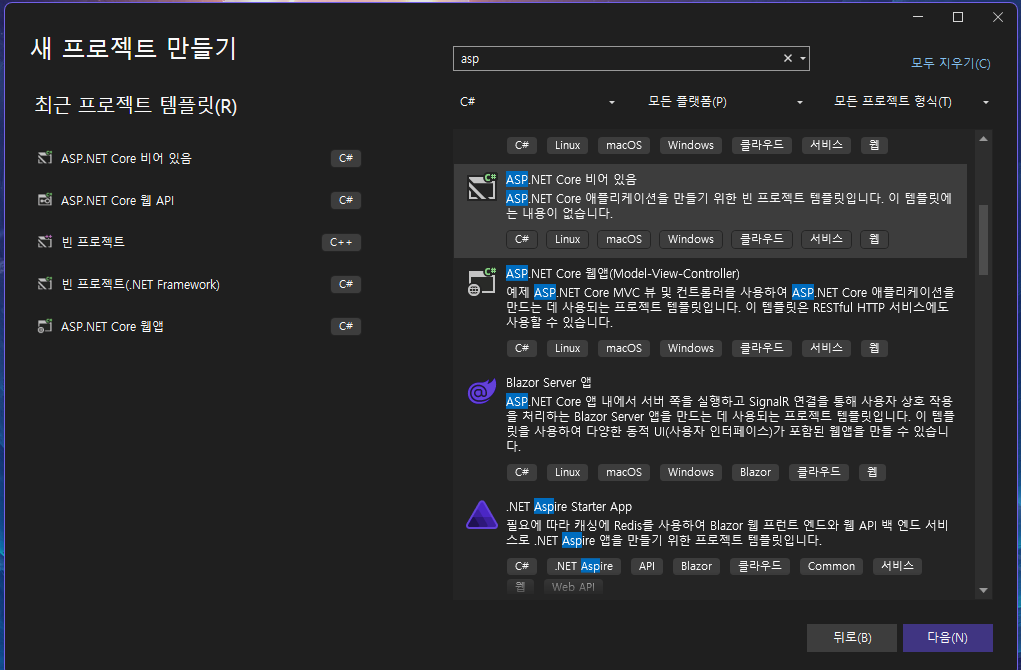 아마 당분간은 ASP.NET Core 비어있음 템플릿을 사용하여 처음부터 만드는 것을 목표로 진행된다.
