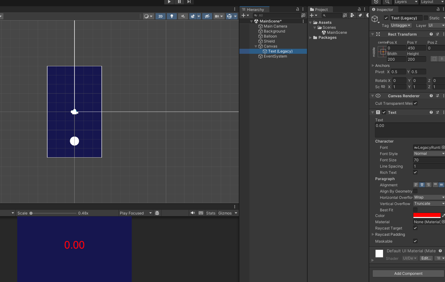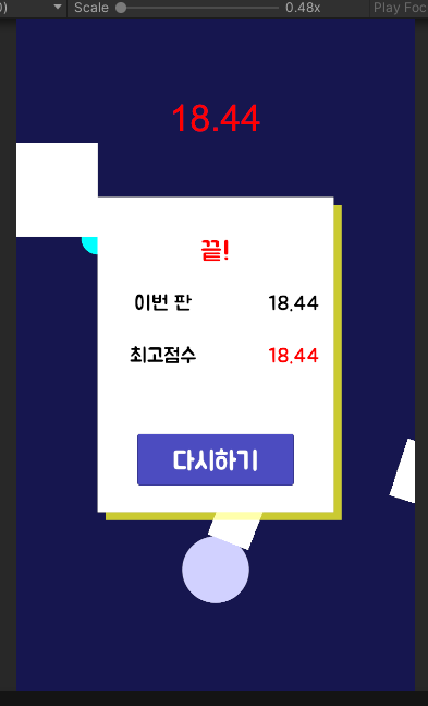 이제 풍선에 닿으면 풍선이 터지고 게임이 끝나는 부분과 시간 UI를 작동시켜보자