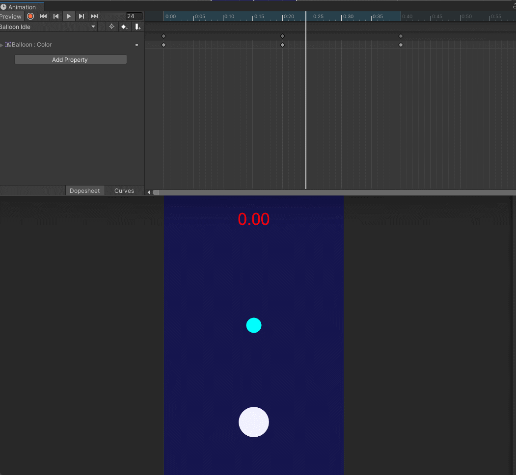 Balloon에 애니메이션을 추가한 후 색상을 변경해 깜빡이는 효과를 추가해준다.